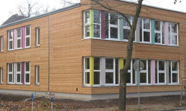 Erweiterung der Paul-Dessau-Gesamtschule in Zeuthen um einen 4. Bauabschnitt. Errichtet in konventioneller, energiesparender Bauweise. Mit der Fassadendämmung, dem Gründach, den hochwertigen Fenstern werden die Anforderungen aus dem energiesparenden Bauen erfüllt. Die Beheizung des Hauses erfolgt entsprechend der Nutzung, d.h. die Flure und Treppenräume sind temperierte Pufferzonen auf dem Weg in die eigentlichen Fachräume.